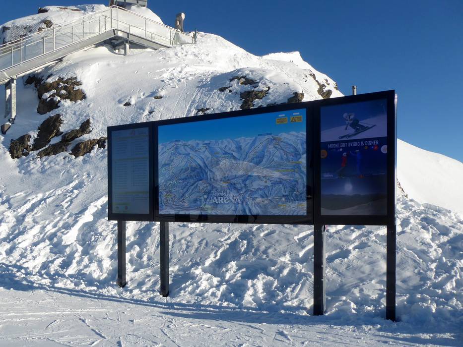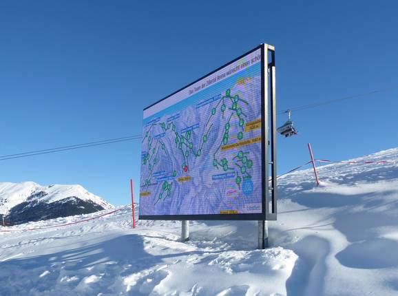 Im gesamten Skigebiet gibt es sehr gute Ausschilderungen mit Pistenplänen an jeder Abzweigung und Infos wie man zu den Hauptorten gelangt. Digitale Anzeigen mit Live-Status machen die Ortientierung sehr einfach. Die WLAN-Hotspots sind deutlich gekennzeichnet und das WLAN funktioniert sehr gut.