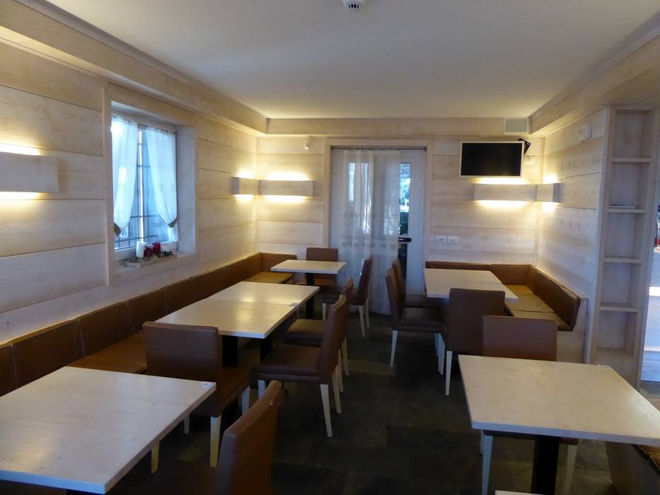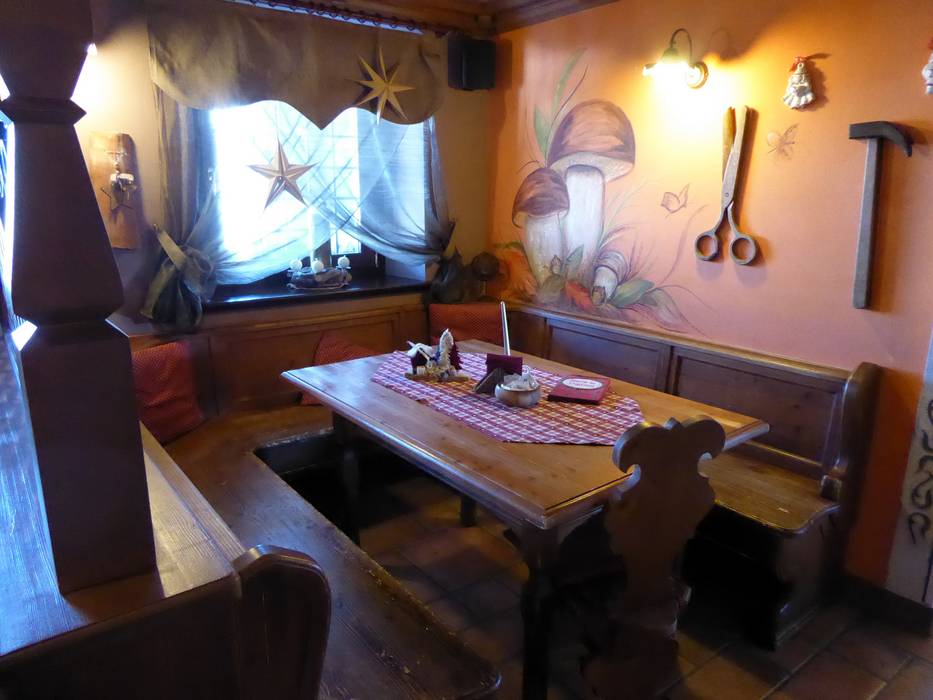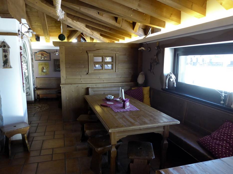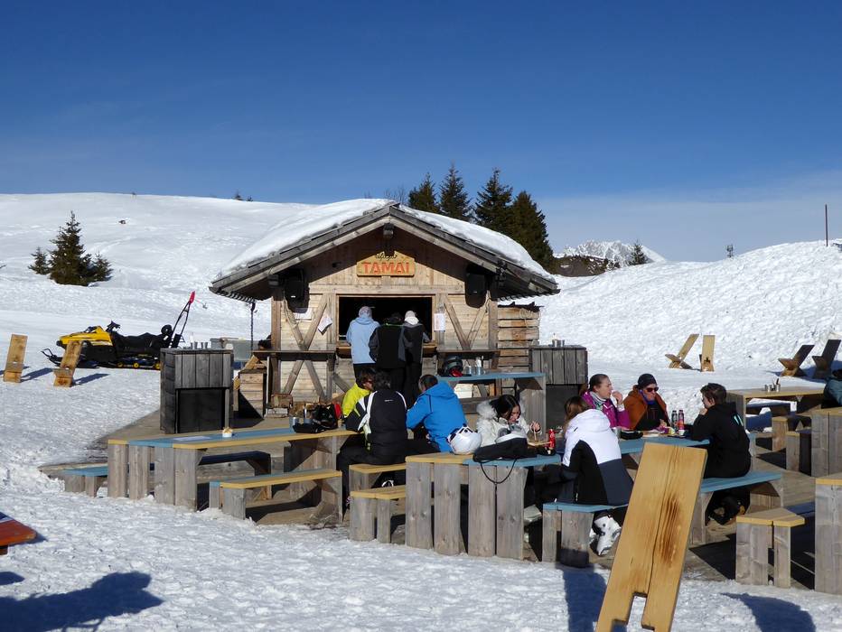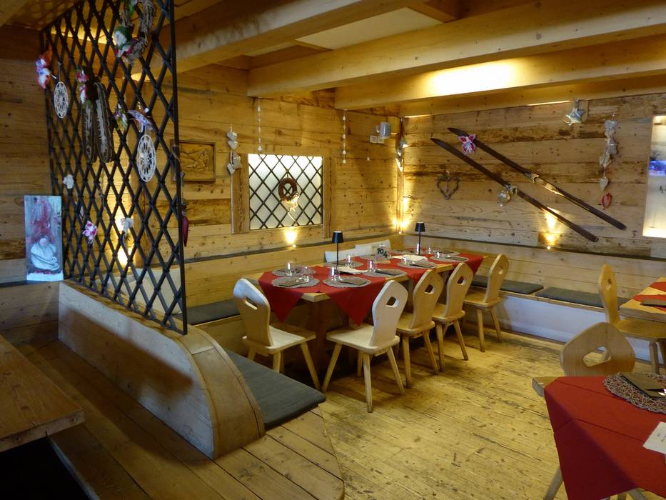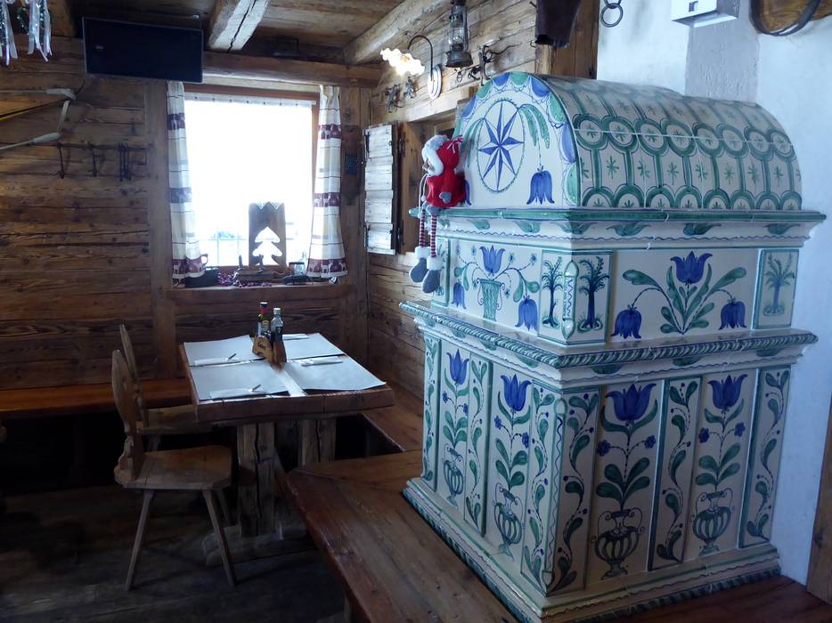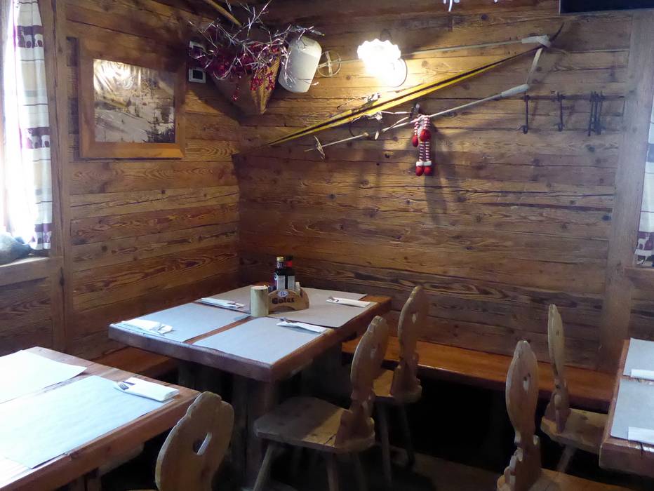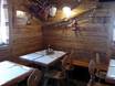 Die kleine Skihütte hat eine sonnige Terrasse und im unteren Bereich eine sehr schöne Stube. Die Qualität des Essens ist sehr gut.
