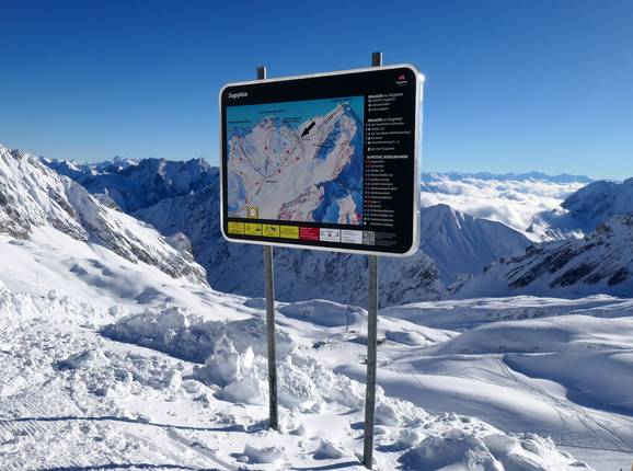 Orientierung (Pistenplan, Informationstafeln, Ausschilderung) und Sicherheit im Skigebiet Zugspitze