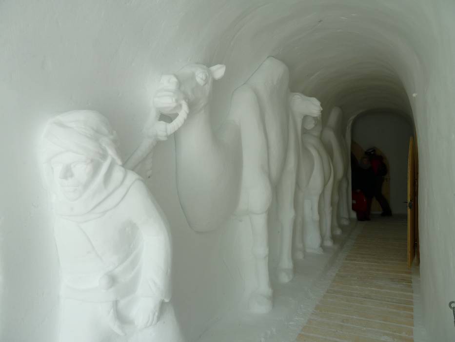 Eine Übernachtung im Iglu-Dorf ist ein einmaliges Erlebnis. Das gesamte Iglu besteht aus Schnee und Eis. Die Wände werden thematisch verziert und es gibt einen Whirlpool.