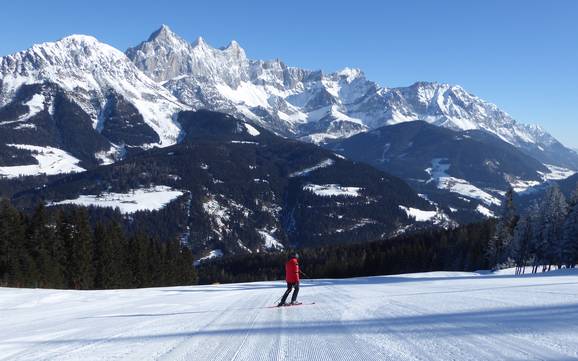 Der Weltcuport Flachau ist für breite, bestens präparierte Pisten und leichte Erreichbarkeit bekannt, das ebenfalls weltcup-erprobte Zauchensee für schneesichere Höhenlage und anspruchsvolles Freeride-Gelände. Innerhalb der 3-Täler Skischaukel Flachau-Wagrain-St. Johann-Alpendorf überzeugt Wagrain mit den zwei legendären Skibergen Grafenberg und Grießenkareck, und WAGRAINi's Winterwelt während im St. Johanner Alpendorf der Fun am Geisterberg und im Betterpark lockt. Richtig bunt geht's am Shuttleberg Flachauwinkl-Kleinarl zu. Hier befindet sich der Absolut Park einer der größten Snowparks Europas mit Superpipe & Chill House. Als übersichtliche Familienskigebiete und Heimreviere aktueller Skistars gelten die Skischaukel Radstadt-Altenmarkt, der monte popolo in Eben und das genusssorientierte Filzmoos. Alles in allem präsentiert sich die Salzburger Sportwelt als Region, wo Sieger herkommen und hinfahren!