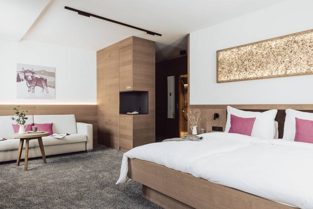 Direkt hinter dem Haus starten Sie aus dem Skistall in endlose Skivergnügen, bevor Sie nach einem langen Tag auf der Piste Ihre müden Muskeln im SPA wieder beLEBEN. Genießen Sie die Wärme unserer finnischen Black Angus Sauna oder des Kräutertempels und entspannen Sie im Heubett – alles mit Blick auf die verschneiten Berge.
