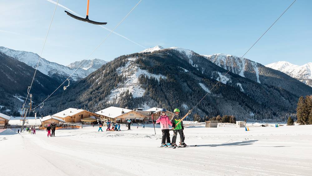 Das Skigebiet Obertilliach am Golzentipp startet direkt vor der Haustüre auf 1.450 m. Jenseits des Massentourismus ist Obertilliach ein idealer Ort zum Skifahren mit Kindern. Das Kinderland der Skischule liegt direkt am Hotel, ein Schlepplift mit leichter Piste auch. Eine ideale Kombination! Das Auto kann während des ganzen Skiurlaubes in der Hotelgarage stehen bleiben.