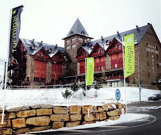 Am Ortseingang von Formigal, mit herrlichem Blick auf das Skigebiet und die umliegenden Berge befindet sich das Hotel Saliecho. In der Parkgarage gibt es für jedes Zimmer einen Stellplatz. Im Fitness - Wellness Bereich steht einem ein Innen- und Außenpool sowie eine Sauna zur Verfügung. Zu den knapp 1 km außerhalb von Formigal liegenden Liftanlagen kommt man mit dem Shuttlebus des Hotels oder mit dem öffentlichen Skibus. Im Restaurant wird das Frühstück sowie ein sehr gutes 3-Gänge Wahlmenü serviert. Ein optimales Hotel im Top-Skigebiet Spaniens.
