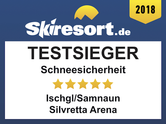 Das Skigebiet Ischgl/Samnaun – Silvretta Arena wurde von Skiresort.de, dem weltweit größten Testportal von Skigebieten, als Testsieger 2018 in der Kategorie „Schneesicherheit“ ausgezeichnet.