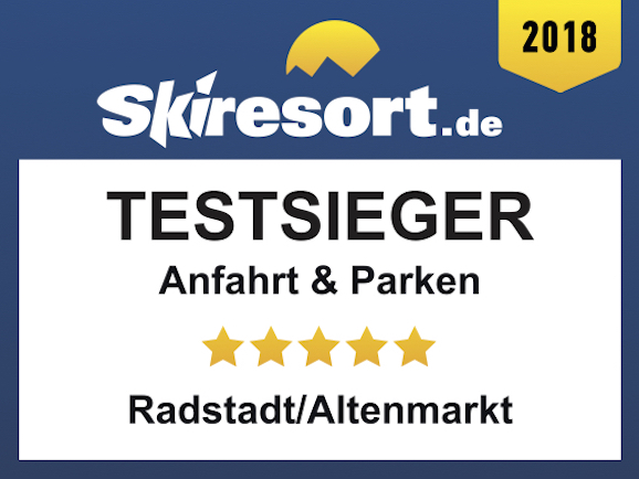 Das Skigebiet Radstadt/Altenmarkt wurde von Skiresort.de, dem weltweit größten Testportal von Skigebieten, als Testsieger 2018 in der Kategorie „Anfahrt, Parken“ ausgezeichnet.