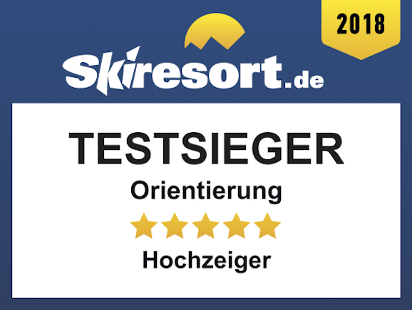 Das Skigebiet Hochzeiger wurde von Skiresort.de, dem weltweit größten Testportal von Skigebieten, als Testsieger 2018 in der Kategorie „Orientierung“ ausgezeichnet.