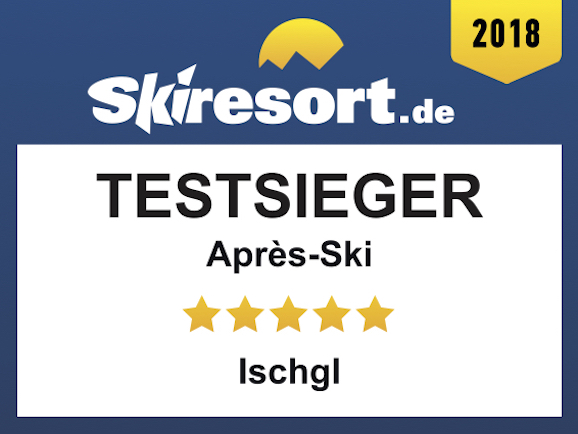 Das Skigebiet Ischgl wurde von Skiresort.de, dem weltweit größten Testportal von Skigebieten, als Testsieger 2018 in der Kategorie „Après-Ski“ ausgezeichnet.