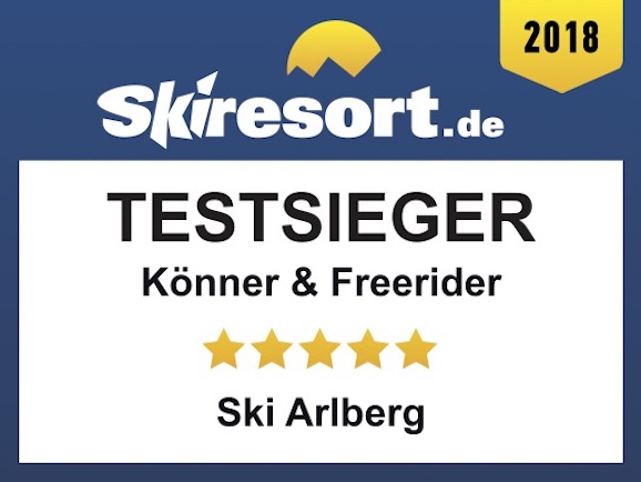 Das Skigebiet Ski Arlberg wurde von Skiresort.de, dem weltweit größten Testportal von Skigebieten, als Testsieger 2018 in der Kategorie „Könner, Freerider“ ausgezeichnet.
