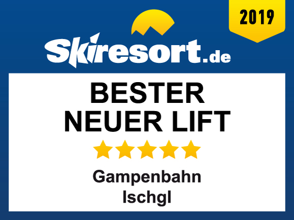 Die Gampenbahn im Skigebiet Ischgl wurde von Skiresort.de, dem weltweit größten Testportal von Skigebieten, als bester neuer Lift 2019 ausgezeichnet.