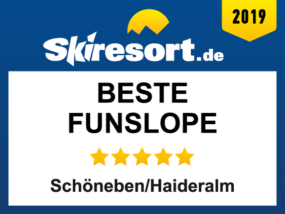 Die Funslope im Skigebiet Schöneben/Haideralm wurde von Skiresort.de, dem weltweit größten Testportal von Skigebieten, als beste Funslope 2019 ausgezeichnet.