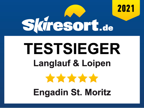 Die Region Engadin St. Moritz wurde von Skiresort.de, dem weltweit größten Testportal von Skigebieten, als Testsieger 2021 in der Kategorie „Langlauf und Loipen“ ausgezeichnet.
