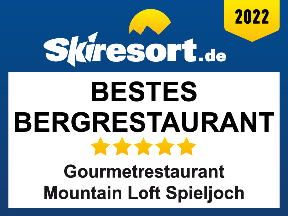 Das Gourmetrestaurant Mountain Loft im Skigebiet Spieljoch – Fügen wurde von Skiresort.de, dem weltweit größten Testportal von Skigebieten, als bestes Bergrestaurant 2022 ausgezeichnet.