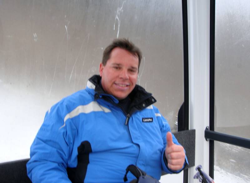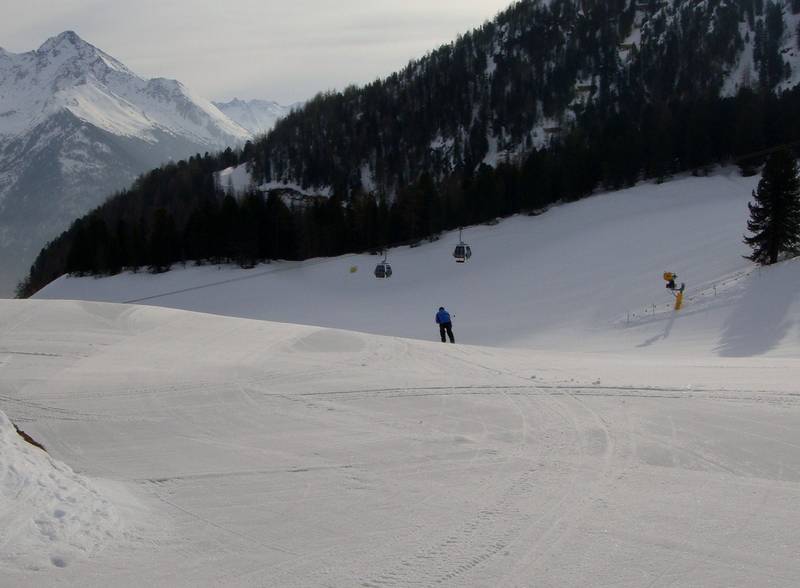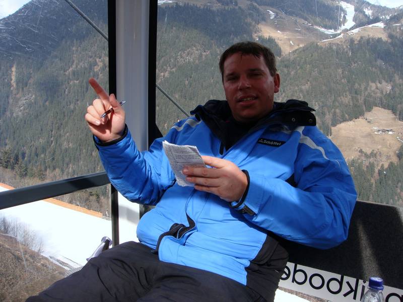 12.00 Uhr: Oliver Kern ist gerade in der Gondel. Dies ist die 24. Auffahrt. 22.924 Höhenmeter sind um Punkt 12 Uhr geschafft. Die Beine fangen langsam an zu brennen, da die Temparaturen recht frühlingshaft sind und erste größere Wellen auf der Talabfahrt entstanden sind. Die top-präparierten Pisten von heute Vormittag mussten leider dem strahlenden Sonnenschein weichen.
