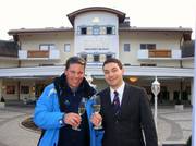 ...am nächsten Tag: Das Team vom Hotel Alpenpalace überrascht Oliver Kern mit einem Weltrekord-Kuchen. Am Nachmittag wird mit Champagner angestoßen.